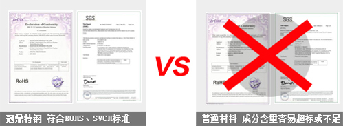 材料不達(dá)標(biāo)或不穩(wěn)定材質(zhì)主要成分達(dá)標(biāo),但其他成分含量容易超標(biāo)或不足,且不穩(wěn)定,不一定符合ROHS、SVCH等相關(guān)標(biāo)準(zhǔn)。